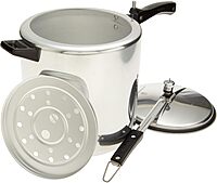 Brand HAWKINS Capacity 12 Liters Material Aluminium Colour Silver Finish type Mirror Satin About this item Pressure cooker with easy quarter turn open and close lid Made from pure virgin aluminium, exterior mirror polished Improved pressure regulator saves more fuel Inside-fitting safety lid will not open until pressure falls Suitable for gas, electric, ceramic and halogen cooktops