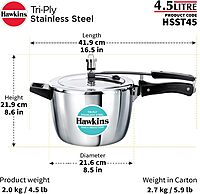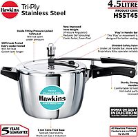 Hawkins 4.5 Litre Triply Stainless Steel Pressure Cooker, Inner Lid Cooker, Silver (HSST45)