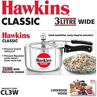 Hawkins Classic Aluminum Pressure Cooker 3 Litres - Silver - Wide - CL3W