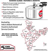 Brand: ‎Hawkin Color: ‎Silver Features: Made from premium quality aluminium material The precision-designed weight pressure regulator system Heat-resistant bakelite handle Suitable for gas, electric, ceramic and halogen cooktops Adds a touch of sophistication to your kitchen model number: ‎A30ADetails: Hawkins Classic Pressure Cooker made from pure grade virgin aluminum, it helps in faster cooking and even heat distribution. The safety valve is located under the lid handle bar so that when it operates the steam is safely deflected downwards. The gasket has minimum exposure to steam inside the cooker, does not rub every time the product is opened and closed - so lasts longer. Suitable for gas, electric, ceramic and halogen cooktops. This pressure cooker adds a touch of sophistication to your kitchen. It is compact in size and the cookware looks attractive and thus enhances the appearance of your kitchen.