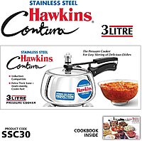 Hawkins Contura Stainless Steel Pressure Cooker, 3.0 Liter Capacity