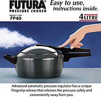 Color: ‎Black Features: Hard anodised body and lid Stays flat, heats evenly Ideal for light frying before pressure cooking 46 Percent faster than a microwave oven Unique body with rounded sides for easier stirring Details: Hawkins Futura Pressure Cooker is made of virgin aluminium which is hard anodised for long-lasting durability. It is largest-selling, most popular range of pressure cookers - perhaps because of its attractive combination of features, benefits and price. The pressure cooker has a unique body with rounded sides for easier stirring, better visibility and easy removal of food. for difficult dishes which require a lot of stirring, it is the ideal cooker. It ideal to cook on a gas stove as well as an induction top. Model: ‎IFP40