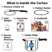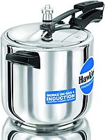 Color: ‎Silver Features: A pressure cooker helps in cooking food quickly and also helps in retaining various vitamins and minerals Ideal for cooking for 6-8 persons, Base flat diameter 158 mm, Base thickness 5.81 mm Body made up of steel and handle made up of Bakelite The handle stays cool and is long-lasting Works on gas, induction, electric, ceramic and halogen Details: HAWKINS STAINLESS STEEL PRESS COOKER 6LTModel: ‎HWS_B65_SIR