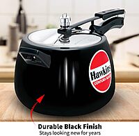 Ideal for 7 to 9 Persons Hard Anodised body and Stainless Steel lid Black body heats faster Does not react with food Inside-fitting safety lid − will not open until pressure falls Stays looking new for years Brand Hawkins Capacity 6.5 litres Material Aluminium Colour Black Finish Type Glossy Product Dimensions 41.7D x 24.7W x 23.2H Centimeters Special Feature Gas Stovetop Compatible Wattage 700 Watts Item Weight 2.81 kg Control Method Touch