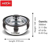Key Features: 2000 ML Capacity Keeps Your Food Hot For Long Hours Designed With An Inner Stainless Steel Container See Through Unbreakable Lid Simple And Functional Lid For Easy Use Milton Insulated Casseroles Are Designed To Keep Your Food Hot And Fresh For Long Hours. This Insulated Casserole Has An Outer And Inner Steel Body. It Has An Unbreakable See Through Lid So That You Know Whats Inside The Casserole Without Opening It. Inner outer stainless steel casserole Transparent lid, made up of polycarbonate Lid is unbreakable Insulated, keeps food hot for long hours Capacity: 1.95 Litres Color: Silver, Material: Stainless steel Package Contents: 1-Piece Clearsteel2000 Casserole Warranty Information: One year manufacturer defect only