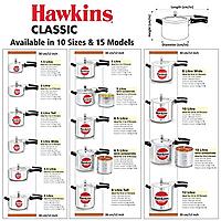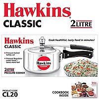 Brand: HawkinsColor: SilverFeatures: Ideal for 2 or 3 Persons Made from pure virgin aluminium, exterior mirror polished Base thickness 3.25 to 4.06 mm Super-fast cooking Improved pressure regulator − saves more fuel Inside-fitting safety lid − will not open until pressure falls Binding: Kitchenmodel number: CL20Part Number: Hawkins Classic Pressure Cooker CL20Details: Size:2-Liter The Classic is Hawkins' largest-selling, most popular range of pressure cookers - perhaps because of its attractive combination of features, benefits and price. This range was the first to be introduced by Hawkins and has been kept up to date by numerous innovations and improvements over the years. The latest improvement, a superior pressure regulating system that controls pressure to a narrower, more efficient range, reduces sprouting of frothy foods (such as dal) and is easier to insert and remove. The safety valve is located under the lid handle bar so that when it operates the steam is safely deflected downwards. The gasket has minimum exposure to steam inside the cooker, does not rub every time the product is opened and closed - so lasts longer. Suitable for gas, electric, ceramic and halogen cooktops. Stay-cool handles. Fixed sturdy pivot does not put pressure on the plastic handles as it is a part of the metal handle itself. Thus handles last longer. Made from commercially pure, virgin aluminum. Mirror polished; interior and base matt finish. Inside fitting lid opens only when pressure falls. Stay cool handles. These are thermally efficient, mirror polished aluminum, with matt-finished base and interior. Pressure is regulated automatically to optimum levels for speed cooking. Features a 'goof-proof' lid that seals from the inside like a jetliner door, ensuring greater safety. A multiple stem vent prevents overpressure and is listed by Underwriters Laboratories Inc.EAN: 0735343788208Package Dimensions: 13.2 x 7.4 x 5.9 inches