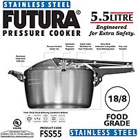 Hawkins Futura 5.5 Litre Inner Lid Pressure Cooker, Stainless Steel Cooker, Induction Cooker, Pan Cooker, Silver (FSS55)