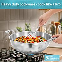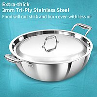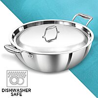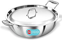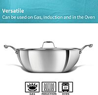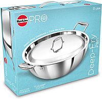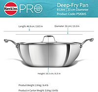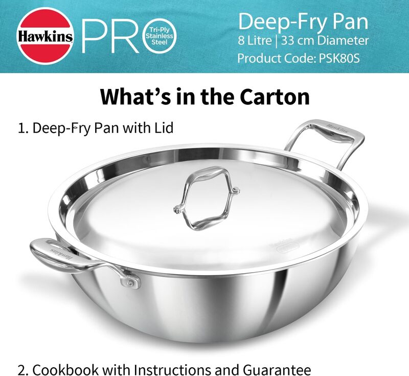 Hawkins Pro 8 Litre Deep-Fry Pan, Triply Stainless Steel Kadhai with Stainless Steel Handles and Stainless Steel Lid, Silver (PSK80S),33 Cm