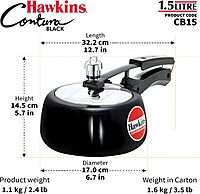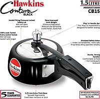 Hawkins Contura Pressure Cooker, 1.5 Litre Capacity, Black CB15