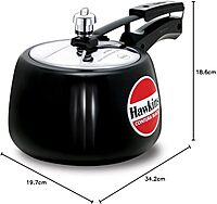 Brand: ‎HAWKINS Color: ‎Black Features: Controls and regulates the pressure level inside the cooker Absorbs heat at a faster rate making it more energy efficient Cooker comes with a curved body for easy stirring of food Made from the finest aluminum material Cooker is resistant to corrosion model number: ‎8901165028842Details: This pressure cooker comes with a curved body for easy stirring of food. Made from the finest aluminum material, this pressure cooker is resistant to corrosion. with a hard anodized body, this pressure cooker absorbs heat at a faster rate making it more energy efficient. Boasting of a black body, this pressure cooker heats faster and cooks food quickly. Enjoy healthy, homemade food everyday with the ease and time-saving convenience offered by this Contura Hard Anodized Pressure Cooker from Hawkins. The improved pressure regulator controls and regulates the pressure level inside the cooker.