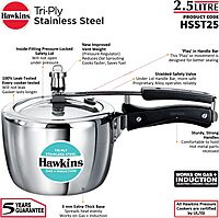 Hawkins 2.5 Litre Triply Stainless Steel Pressure Cooker, Inner Lid Cooker, Silver (HSST25)