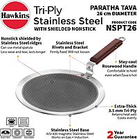 Hawkins 26 cm Paratha Tava, Triply Stainless Steel Shielded Nonstick Tawa with Rosewood Handle, Honeycomb Non Stick Induction Tawa, Silver (NSPT26)