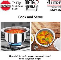 Hawkins 4 Litre Metro Patila, Triply Stainless Steel Tope with Stainless Steel Lid, Induction Bhagona, Tapeli, Silver (SSP40S)