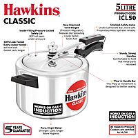 Hawkins 5 Litre Classic Pressure Cooker, Induction Inner Lid Cooker, Pan Cooker, Best Cooker, Silver (ICL50, Aluminium)