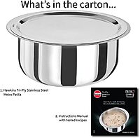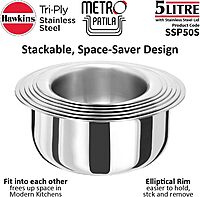 HAWKINS 5 Litre Triply Stainless Steel Cooking Pot, Silver (SSP50S), 2.5 mm Thick, 18/8 Food Grade Lid, Unique Elliptical Rim, Induction, Gas, Electric Compatible