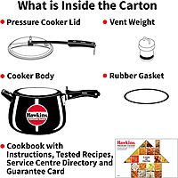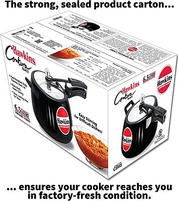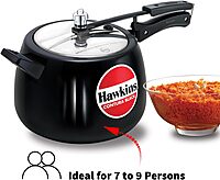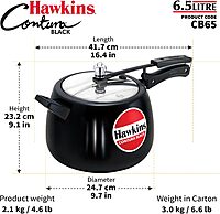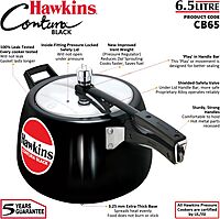 Ideal for 7 to 9 Persons Hard Anodised body and Stainless Steel lid Black body heats faster Does not react with food Inside-fitting safety lid − will not open until pressure falls Stays looking new for years Brand Hawkins Capacity 6.5 litres Material Aluminium Colour Black Finish Type Glossy Product Dimensions 41.7D x 24.7W x 23.2H Centimeters Special Feature Gas Stovetop Compatible Wattage 700 Watts Item Weight 2.81 kg Control Method Touch