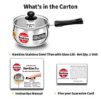 Brand: ‎Hawkins Futura Color: SilverFeatures: Ideal for making tea or coffee Suitable for making soups, tea or other beverages or boiling milk Made from superior surgical grade non-magnetic stainless steel (18cr/8ni, aisi 304) Stays bright, does not pit or corrode, is extremely hygienic Stays flat, heats evenly, no hotspots model number: ‎SST20GDetails: Hawkins 2 Litre Stainless Steel TPan with Glass Lid, Induction Saucepan, Steel Utensil, Silver (SST20G)