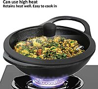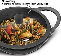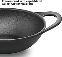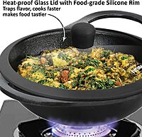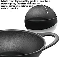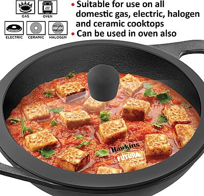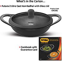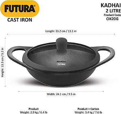 Hawkins Futura 2 Litre Cast Iron Kadhai Pan, Naturally Nonstick Cast Iron Kadai Pan with Glass Lid, Cast Iron Cookware for Kitchen, Black (CIK20G)