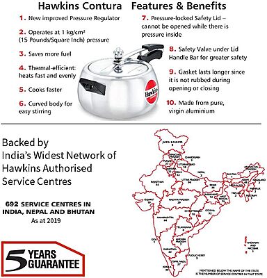 Brand: ‎Hawkins Color: ‎Silver Features: Features an inside-fitting lid Designed with a unique body that has rounded sides for easier stirring Made from premium quality aluminium material Compatible with a gas stove Adds a touch of sophistication to your kitchen model number: ‎HC50