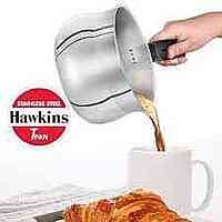Brand: HAWKINS Color: Silver Features: Ideal for making tea or coffee - up to 6 cups at a time Made from superior surgical grade non-magnetic stainless steel (18Cr/8Ni, AISI 304) Stays bright, does not pit or corrode, is extremely hygienic 4.7 mm thick induction bottom - stays flat, heats evenly, no hotspots Cooks faster - Saves more fuel model number: SST15Details: The stainless steel Hawkins t pan is ideal for making tea – up to 6 cups at a time. It is also ideal for making coffee and soup, for boiling milk and water, for cooking instant noodles and for re-heating food. The 4.7 mm thick sandwich bottom heats evenly, has no hotspots and stays flat. The external base of aisi 430 grade magnetic stainless steel makes the tpan induction compatible. It has a technologically advanced, specially designed ezee-pour spout for easy no-drip pouring. A strong, sturdy, stay-cool handle is firmly attached with two stainless steel rivets. The optional glass lid is made from toughened, 4 mm thick, heat-resistant glass with a strong stainless steel rim and a stay-cool knob. Glass lid stops splatter of hot liquids and you can see and judge the tea or other food as it is being prepared without lifting the lid. The total capacity of the t pan is 1.5 litre. However, the maximum fill level is marked on the inside of the t pan which gives a capacity of 1.1 litre (or about 4½ cups). It can be used on all domestic gas, electric, halogen, ceramic and induction cooktops.