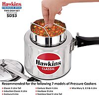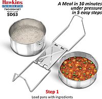 Cook 2 dishes at the same time in your Hawkins pressure cooker. Save your cooking time, fuel and clean-up! Stainless steel containers for healthy and hygienic cooking in pure steam, and a stand for convenient insertion and removal of the stack of containers. Versatile – cook, steam or reheat. The Two-Dish Set is suitable for use in many of our pressure cooker models between 3 to 4 Litre Cook healthier, low-oil foods in pure steam Save more time, more fuel. Plus, clean-up is much easier! These Sets have 2 stainless steel food containers for healthy and hygienic cooking, and a stand for convenient insertion and removal of the stack of containers The versatile containers can also be used for steaming foods that are to be kept out of water Brand HAWKINS Capacity 1.28 Liters Material Stainless steel Colour Silver Special feature Locking Lid