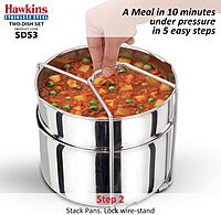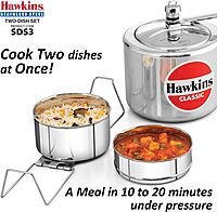 Hawkins Two-Dish Stainless Steel Set, Cooker Separator, Pressure Cooker Pots, Silver (SDS3)